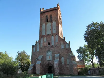 Готическая кирха XIV века, одна из старейших церквей области. Массивная кирпичная постройка с высокой башней, характерная для орденской готики.